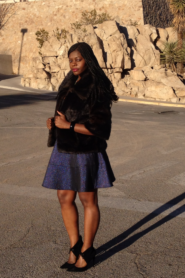 Shoes-Zara (here), Dress- Express (here), Necklace- Gift (Similar here), Clutch- {old}Express (Similar here), Bracelets {old} (listed in previous posts), Faux Fur jacket-Express (Similar here).
