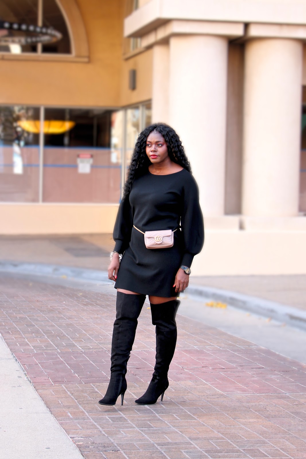 About this look, I initially wanted to keep this look in all black but thought to add a pop of  color and  decided to use this tan/nude bag because I don’t wear these two colors together.  I also wanted to wear this bag as a fanny pack style which is trending and I’m playing with the idea of showing how to do this on youtube. I am actually one of the group of people who actually like the fanny pack trend, do you like the trend?  Thanks for stopping by!