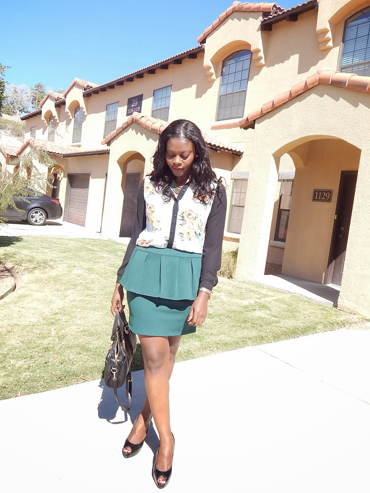 Green isn't my color too but love how you paired the peplum skirt with the lively top. Really nice.