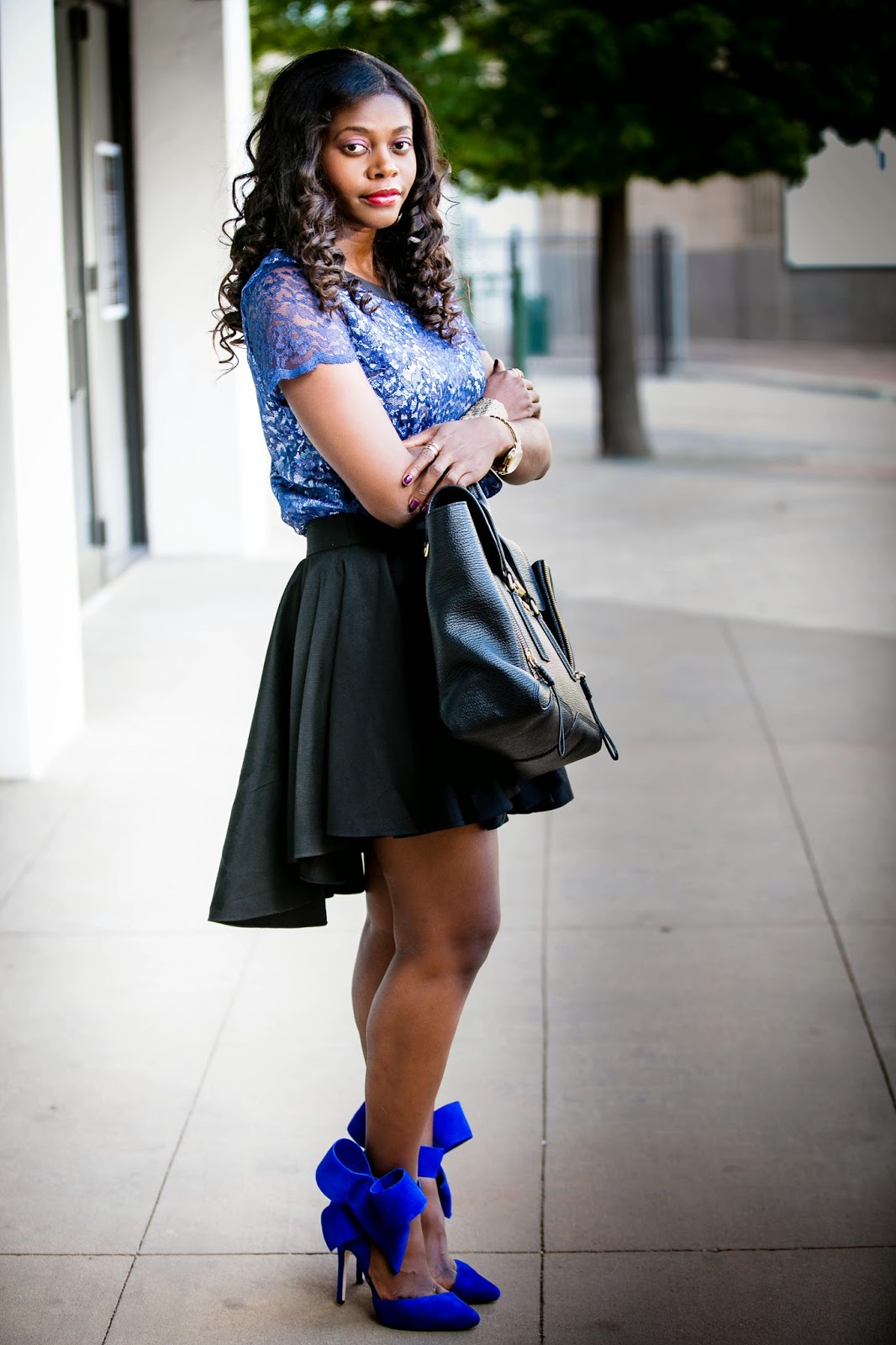 About this look, I wanted to wear these girly bow heels which I love so I thought to make the rest of the look very feminine and work around the heels. I did this with the lace sleeved top, high low skirt and my new favorite bag. By the way I think lace is one way to add femininity to a look.