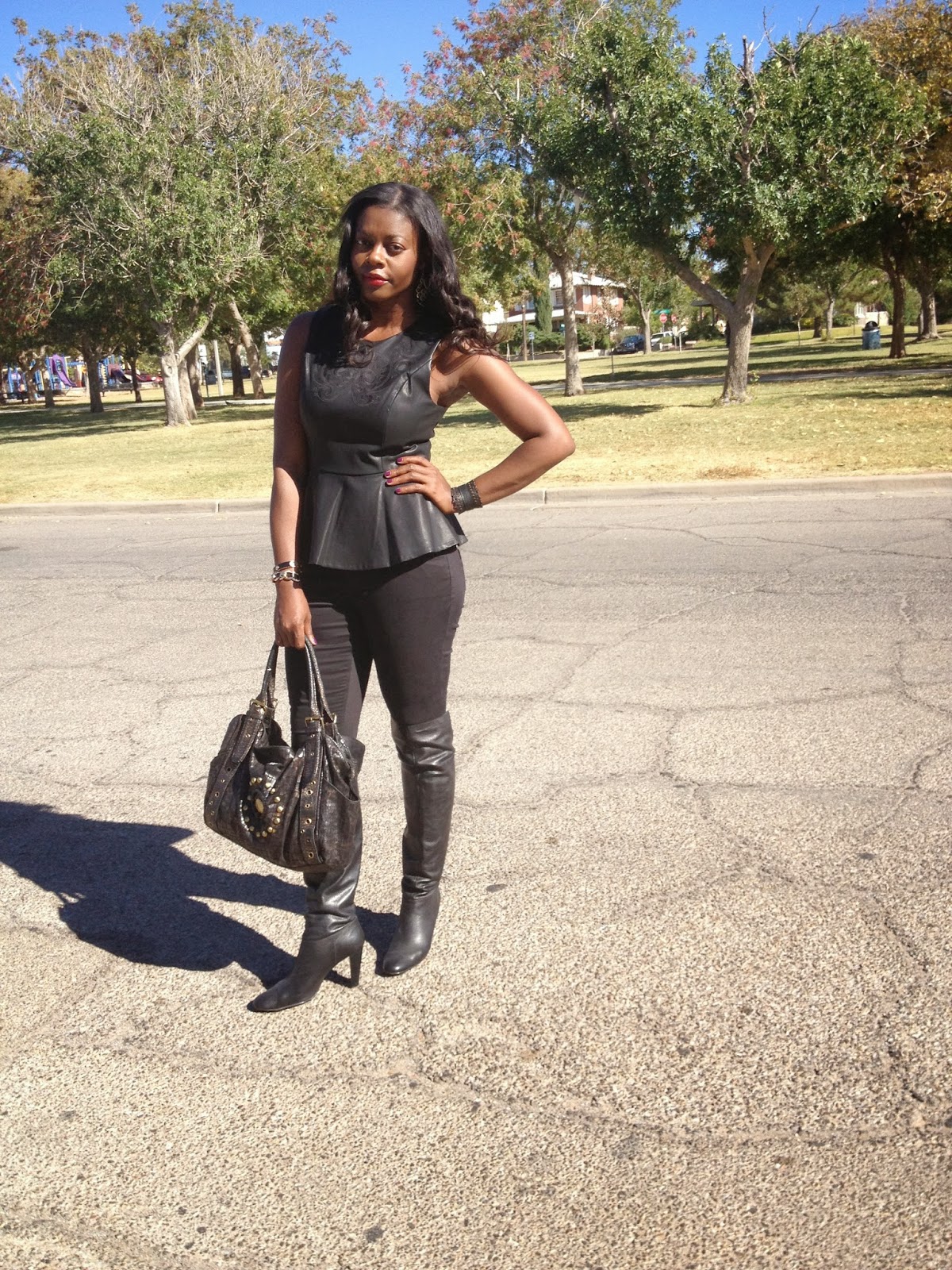 Happy new month guys! I can’t believe November is here?!  I feel the older I get, the faster time goes.  My birthday is about 4 weeks away as well as upcoming thanksgiving and Christmas, my favorite holidays.  It’s already starting to feel like the holidays as I attended the annual Christmas fair on sunday.  Anyway, november here usually brings cooler weather.  I was happy to be able to wear one of this season’s trends I’ve had, the over the knee (OTK) boot which I wore with a peplum .