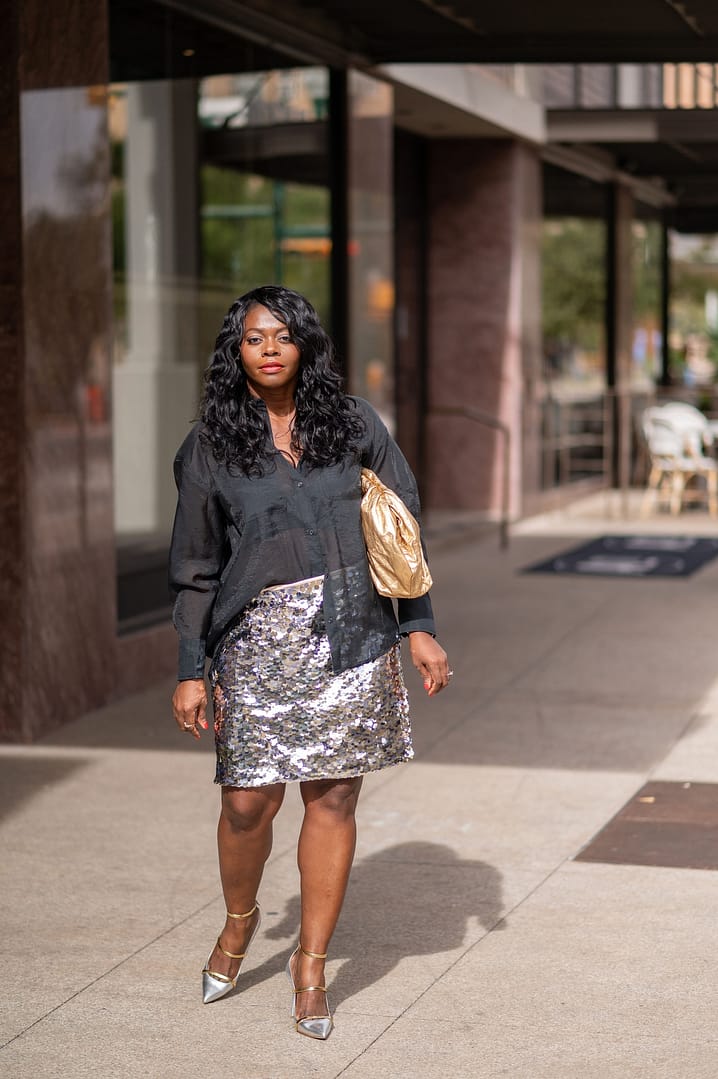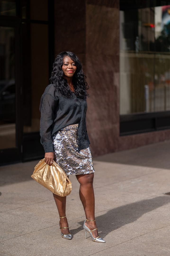 Hello, I had shared this look over the holidays on my social media pages but not on the blog so sharing it here now.  Sequins are a safe choice for holidays and guess what? you can wear them even year round just depends on how it’s styled.  I would style it in a less casual way with a shirt like this or tshirt after the holidays.  Hope you like the look!