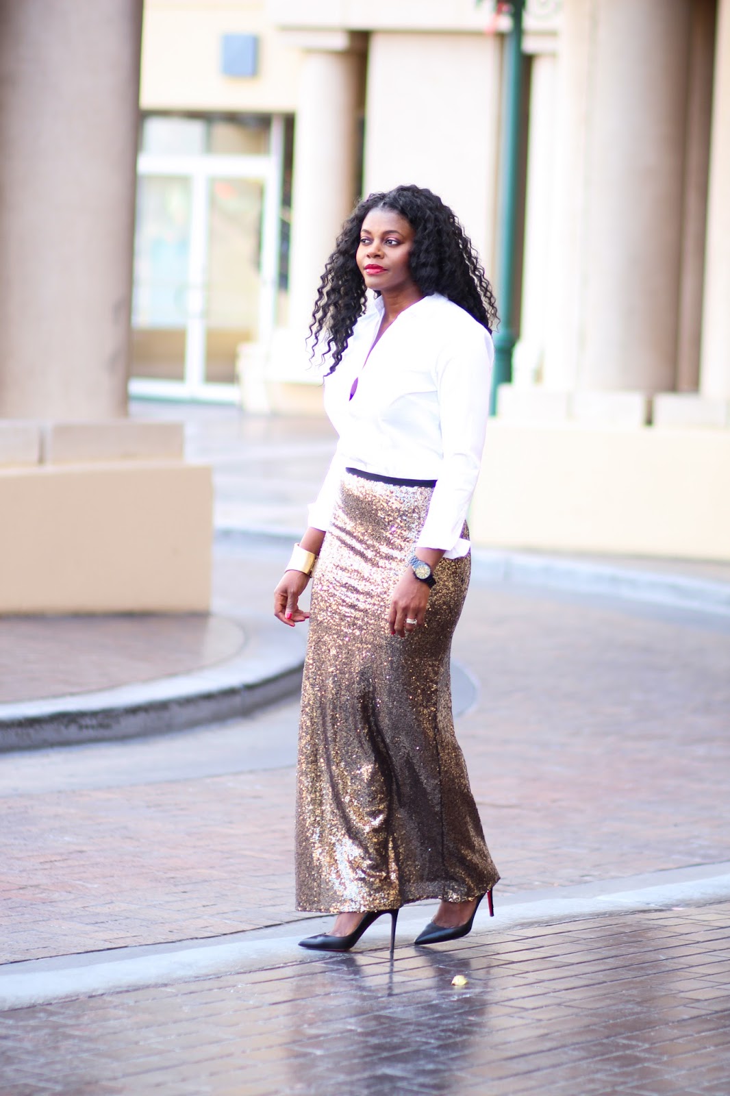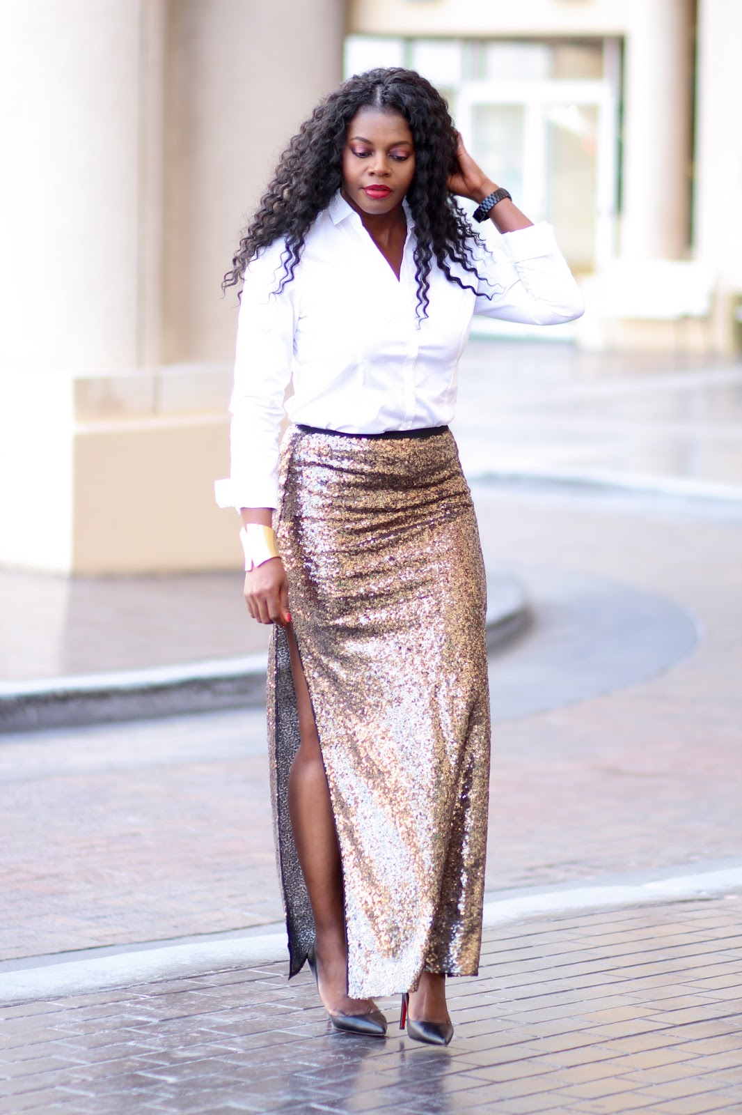 I chose to share this look for new year after reshooting from my bday because the pictures were not clear. I figured nothing screems a new year look more than sequins right. Personally, sequins are bold enough alone that I felt pairing it with a simple classic white shirt and classic black