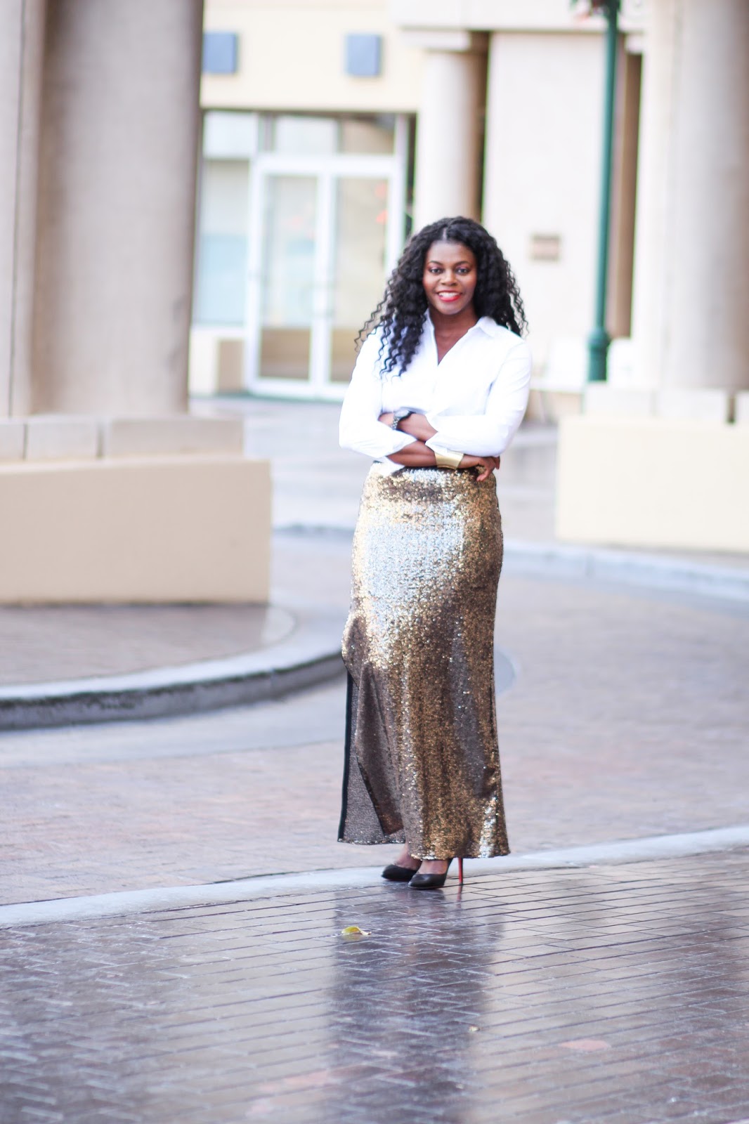 I chose to share this look for new year after reshooting from my bday because the pictures were not clear. I figured nothing screems a new year look more than sequins right. Personally, sequins are bold enough alone that I felt pairing it with a simple classic white shirt and classic black