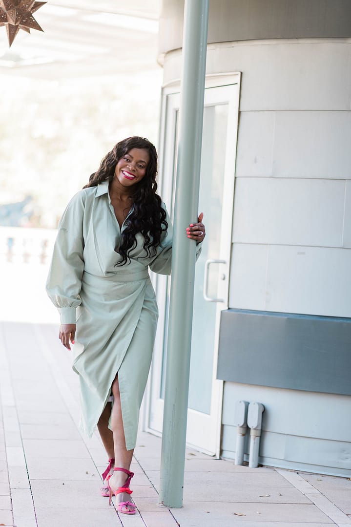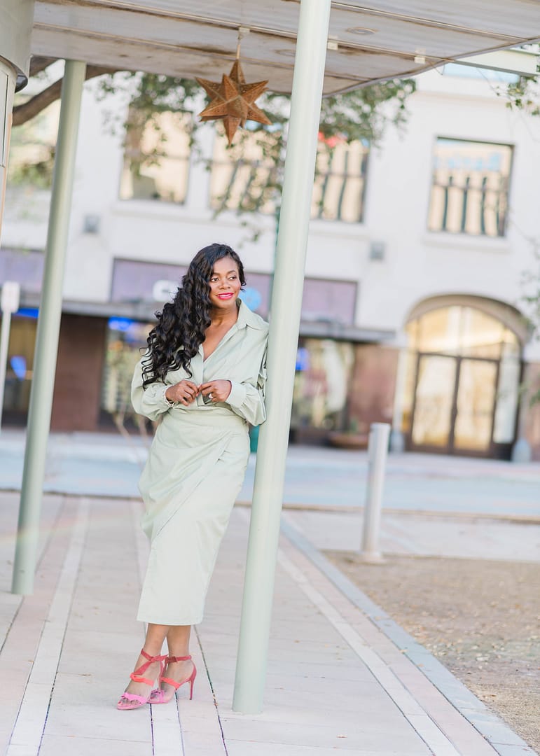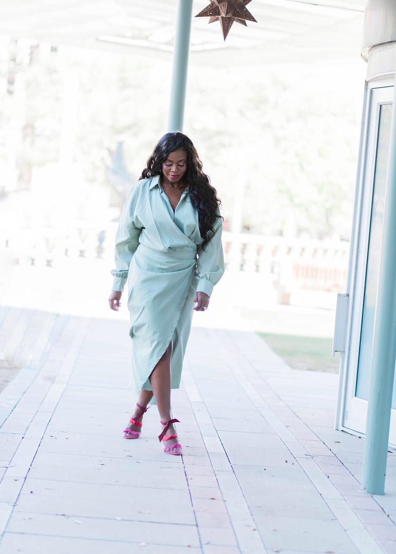About the look, I liked this dress when I saw it on sale. I liked that it was a shirt dress, the length and color and although I paired it here with colorful heels just to style it more summery and fun, I think it can also transition well into fall with boots and layered. Hope you like and thanks for stopping by!
