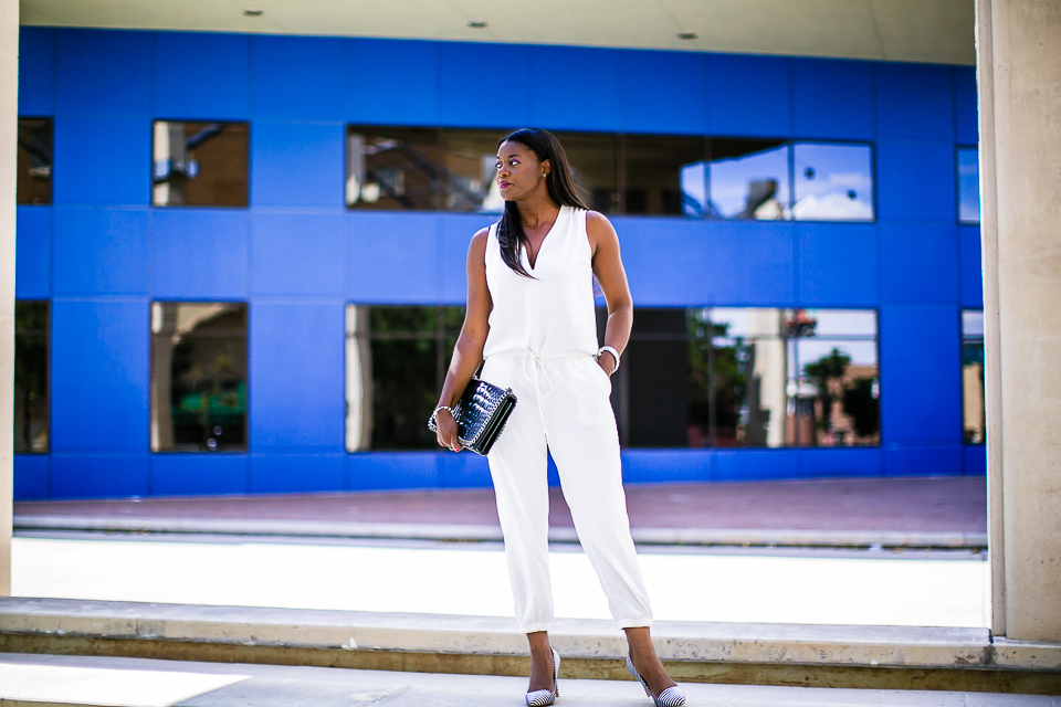 With this look, I paired one of my favorite trends the jumpsuit with white/black heels and a black bag keeping the look simple yet with the color palette of the classic black and white. Thanks for reading!